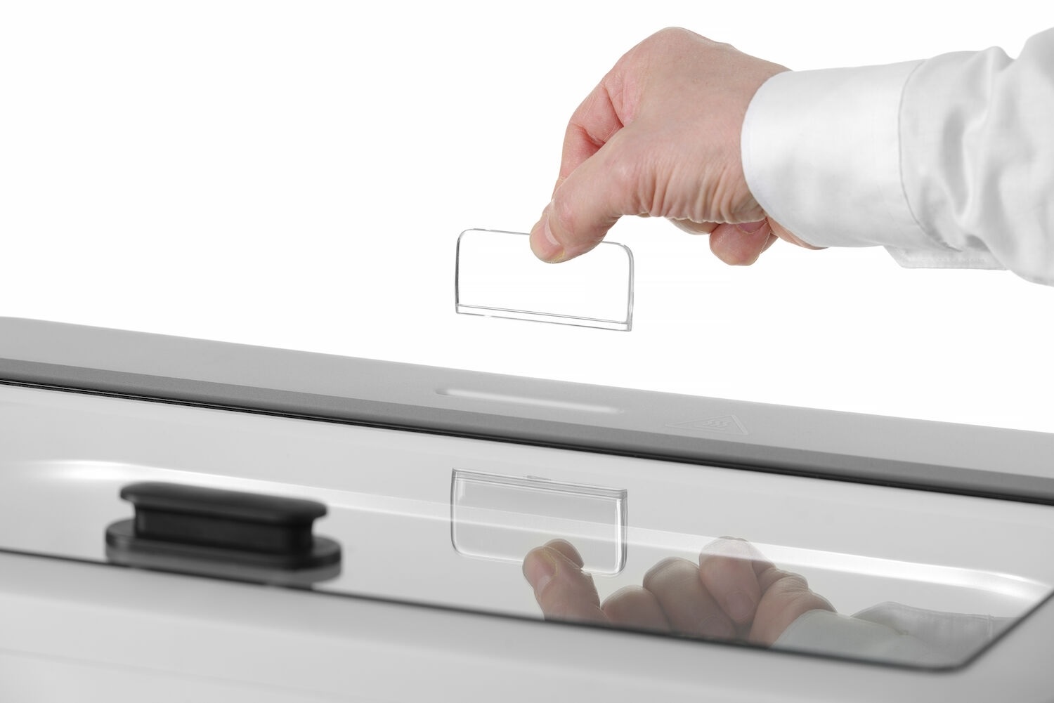 Встроенный держатель карт на крышке для карт с названиями продуктов.
