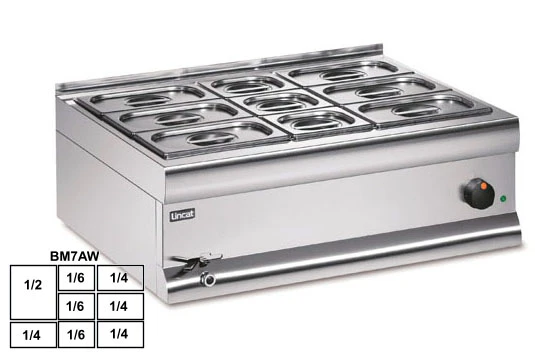 Мармит для вторых блюд Lincat BM7AWFL предназначен для сохранения в горячем состоянии супов, соусных блюд и гарниров, а также для раздачи их потребителям на предприятиях общественного питания и торговли.