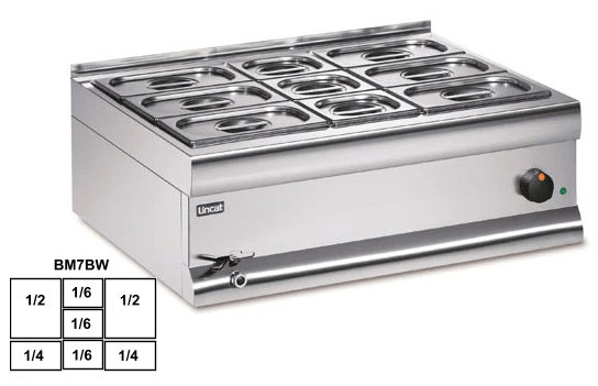 Мармит для вторых блюд Lincat BM7BWFL предназначен для сохранения в горячем состоянии супов, соусных блюд и гарниров, а также для раздачи их потребителям на предприятиях общественного питания и торговли.