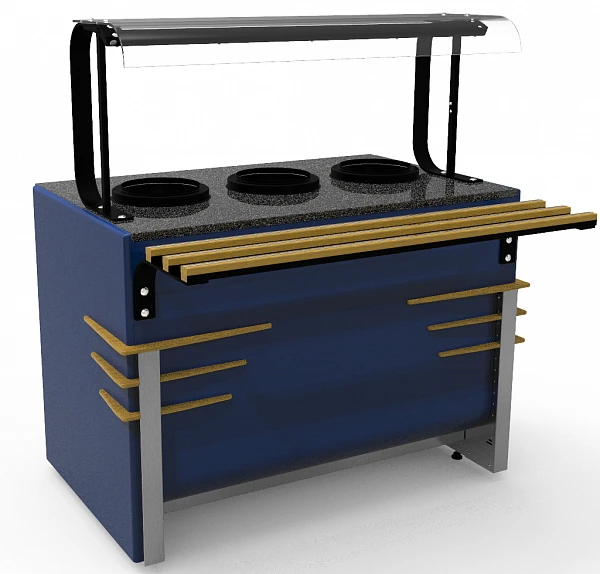 Мармит имеет светодиодную подсветку в нише фасадной части и подсветку рабочей зоны.