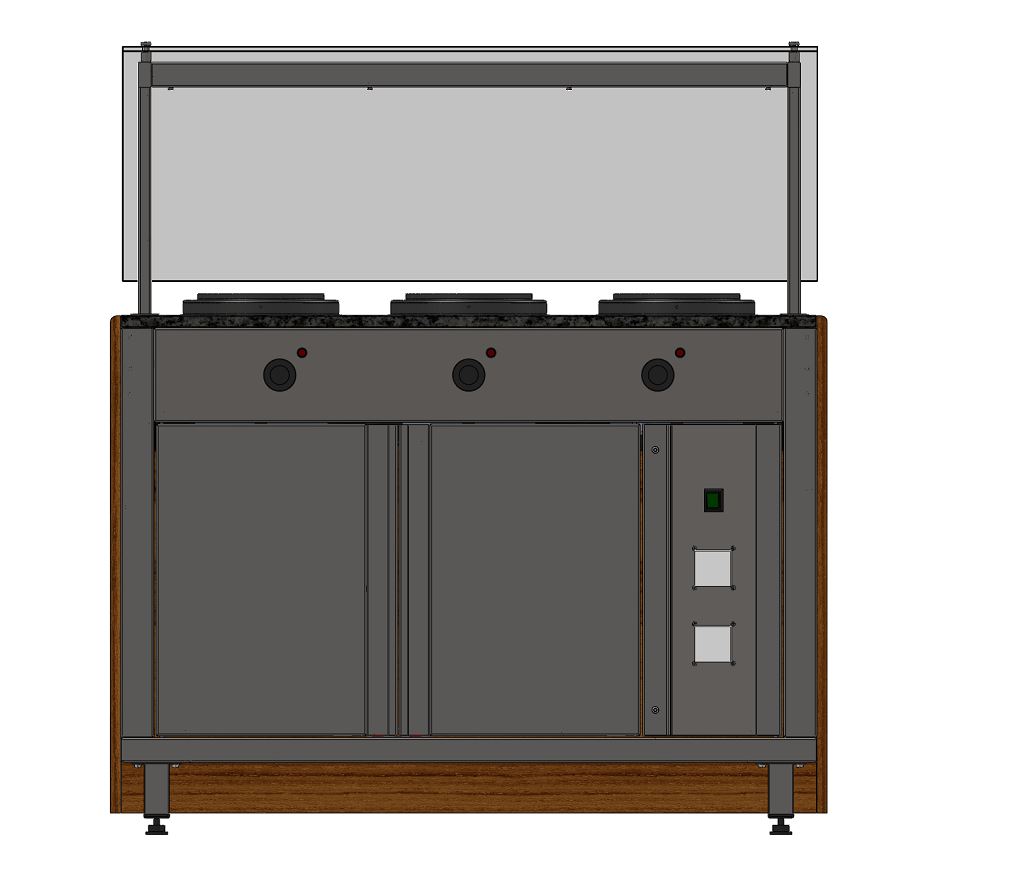 Мармит имеет светодиодную подсветку в нише фасадной части и подсветку рабочей зоны.