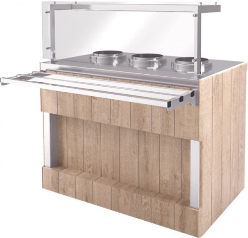 Сменные фасады линий раздачи и шведских столов крепятся на незаметную для глаза запатентованную систему крепежа.