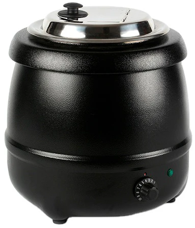 Мармит оснащен круглой вставкой из нержавеющей стали с крышкой