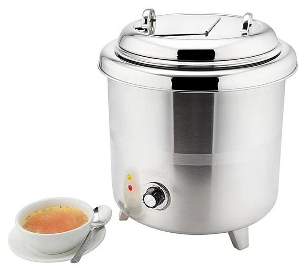 Мармит первых блюд Sunnex 10 л 83388-1 предназначен для постоянного подогрева первых блюд и поддержания их оптимальной температуры на предприятиях общественного питания и торговли. Модель круглого сечения оснащена крышкой с рукояткой и электромеханической панелью управления. Корпус выполнен из высококачественной нержавеющей стали с серебристой поверхностью.