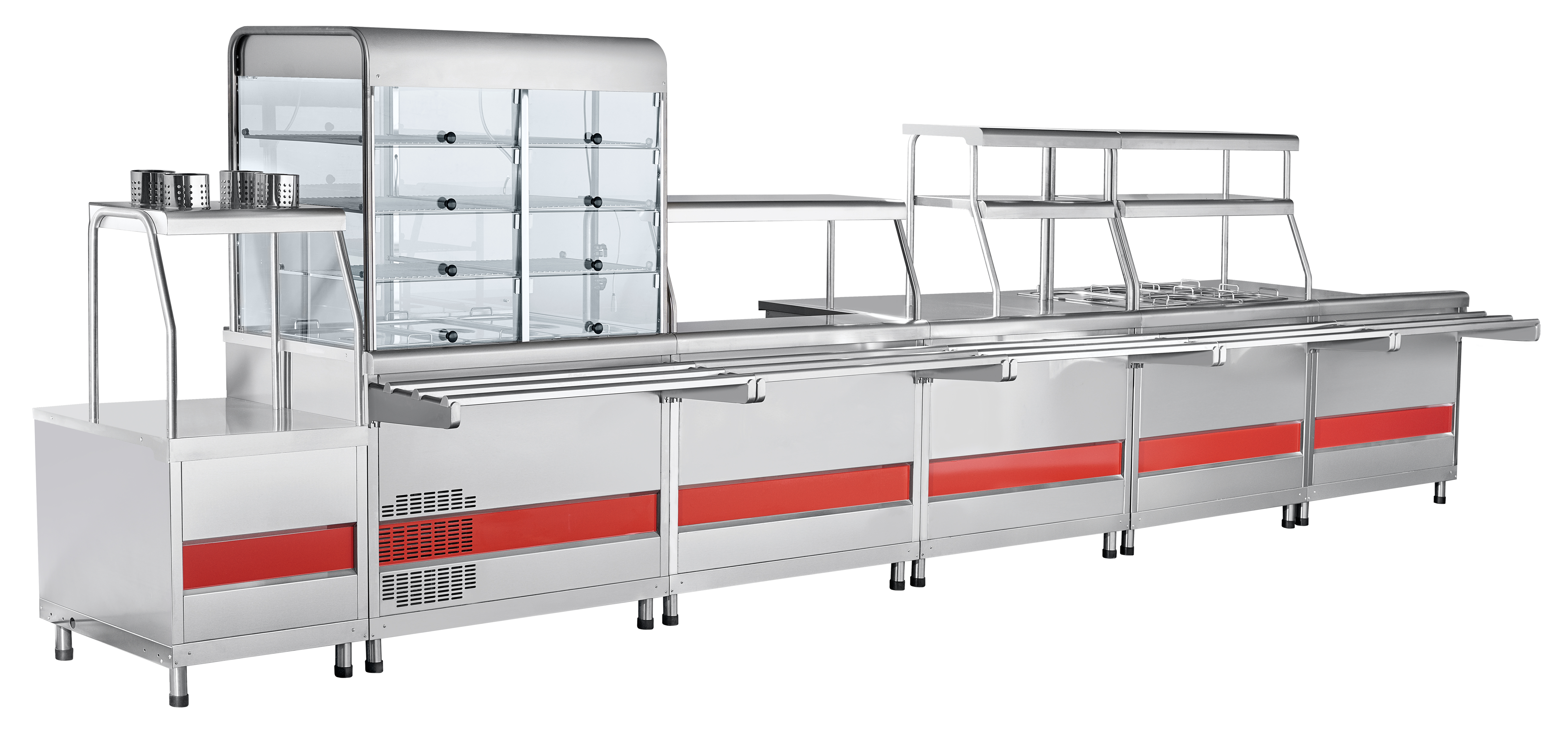 Двойная полка над мармитом обеспечивает большую полезную площадь для выкладки блюд ти имеет лампу подсветки.