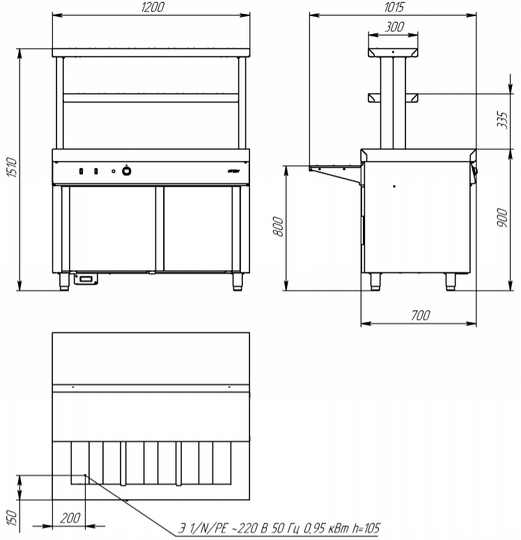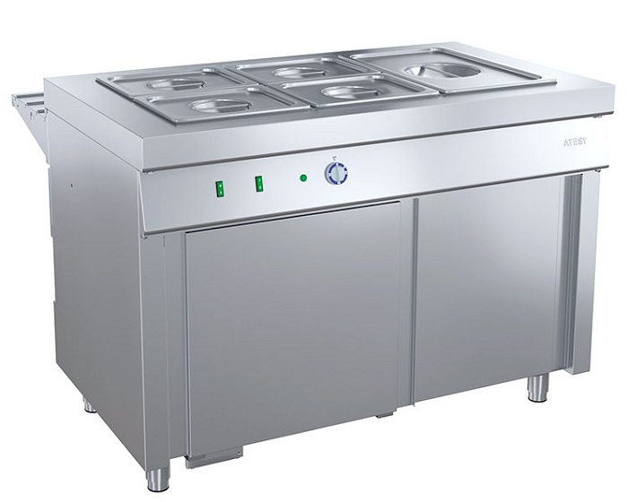Мармит вторых блюд Atesy Ривьера М2-1200-02-СО без полок предназначен для поддержания в горячем состоянии гастроемкостей со вторыми блюдами, гарнирами и соусами.