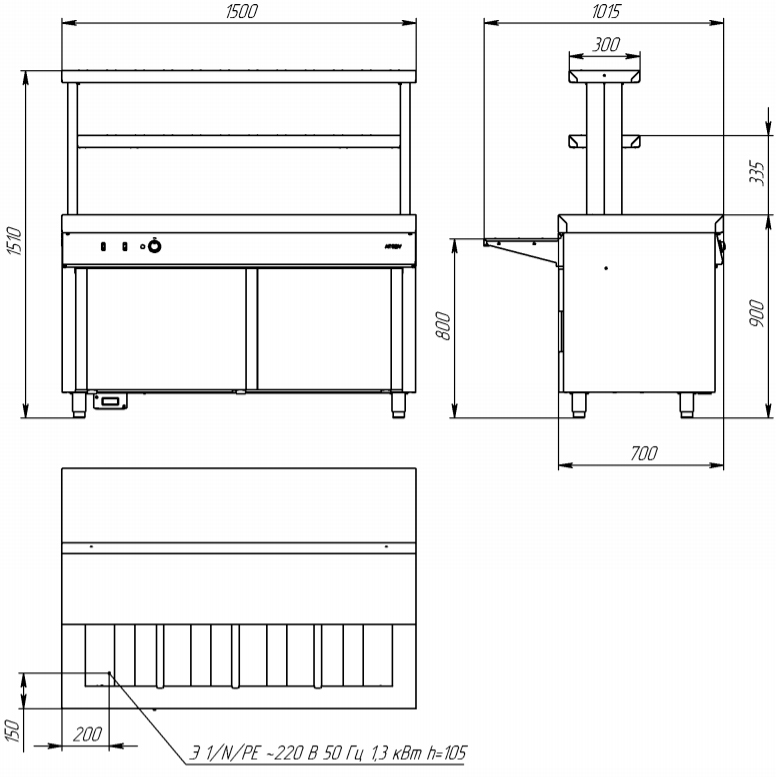 Габаритные размеры, (ДхШхВ) мм 1500х1015х880±20