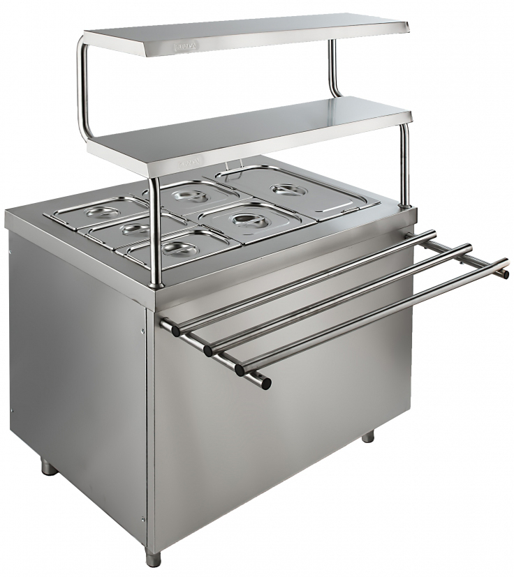 В мармите реализован принцип «водяная баня». В отличии от «сухого принципа», подогрев на водяном пару обеспечивает равномерный нагрев емкостей без пересушивания и пригорания подогреваемых блюд.