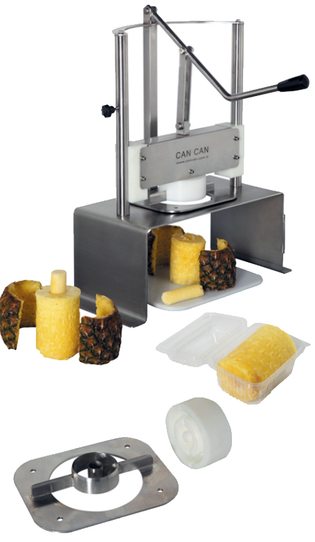CanCan CC.ASM01/7-8 используется для очистки ананасов от кожуры и сердцевины на предприятиях общественного питания и торговли. Одним движением руки быстро и точного удаляется сердцевина фрукта и полностью очищается кожура ананаса.