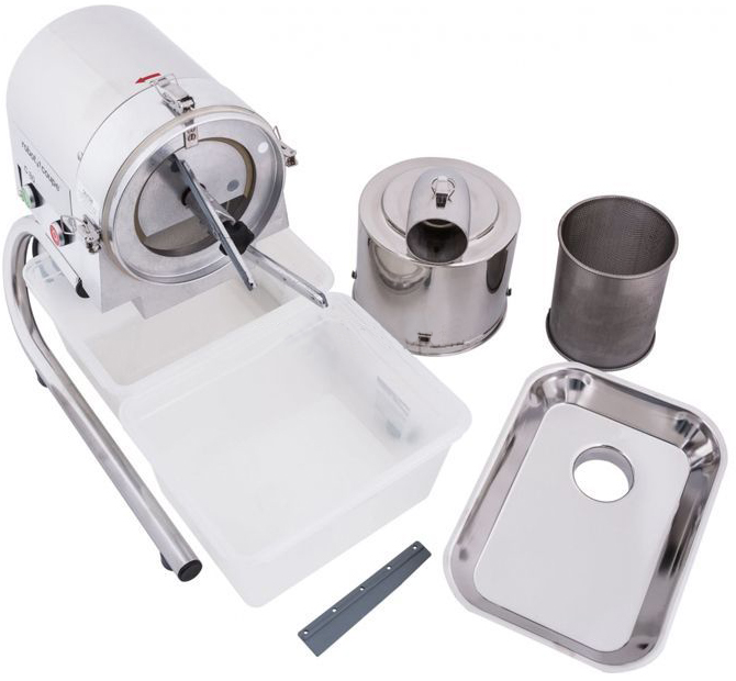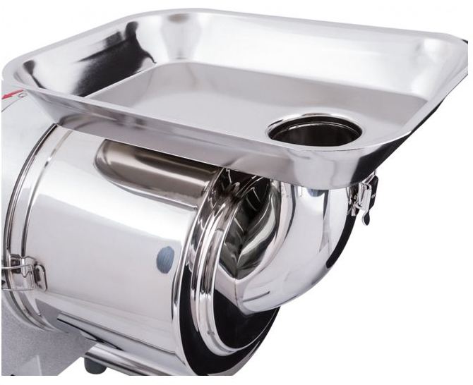 Бункер для загрузки продуктов не требует заранее нарезать продукты перед обработкой или удалять косточки, что в разы поднимает уровень производительности. Благодаря специальной воронке косточки, семена и стебельки не перетираются вместе с продуктами и готовое блюдо не будет горчить. Отходы (косточки, кожура, семена, большие волокна особых продуктов) выходят через специальное отверстие для выхода жмыха.
