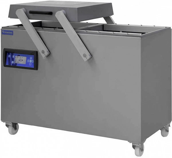 Машина вакуумной упаковки Henkovac D6 с корпусом и крышкой из нержавеющей стали рассчитан на крупные производства и большие объемы упаковываемой продукции.