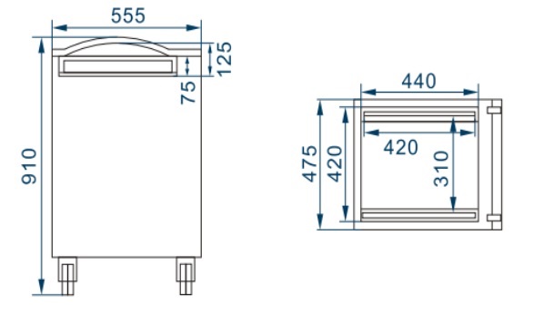 Размер камеры: 420*310*75 (общая рабочая высота за счет крышки 125) мм