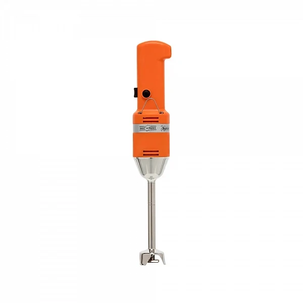 Модель оснащена несъемным эмульгатором длиной 160 мм из нержавеющей стали и электромеханической системой управления. Установлена эргономичная ручка. Предусмотрен вариатор скорости вращения насадки до 9500 об/мин.
