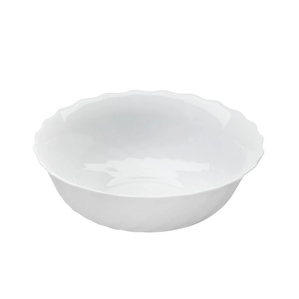 Миска Arcoroc Arcopal Trianon 6,5'' 160мм предназначена для подачи супов, ухи, салатов и других блюд. Сервировочную посуду «Arcopal Trianon» от французской компании Arcoroc заказывают на общие кухни офисов, в столовые, рестораны и бистро. Миска со слегка выгнутыми краями, украшенными волнообразным фактурным рисунком, изготовлена из белоснежной непрозрачной стеклокерамики. Глянцевая поверхность легко отмывается вручную, не темнеет и не желтеет со временем.