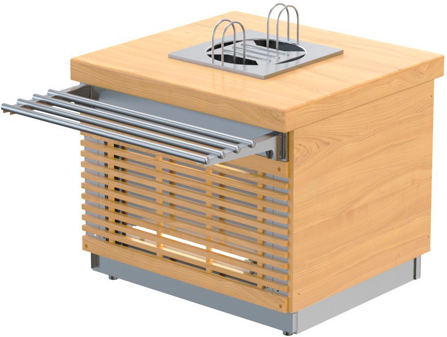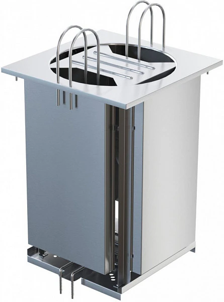 В верхней части модуля расположены ограничители из нержавеющего прутка, надежно фиксирующие стопку тарелок одного диаметра.