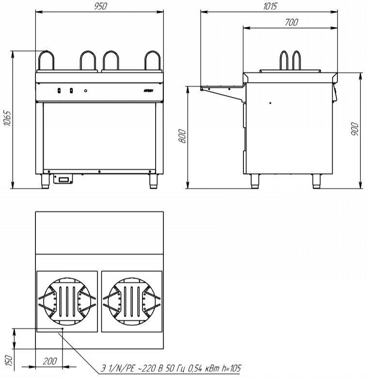 Габаритные размеры, (ДхШхВ) мм 950х1015х105±20