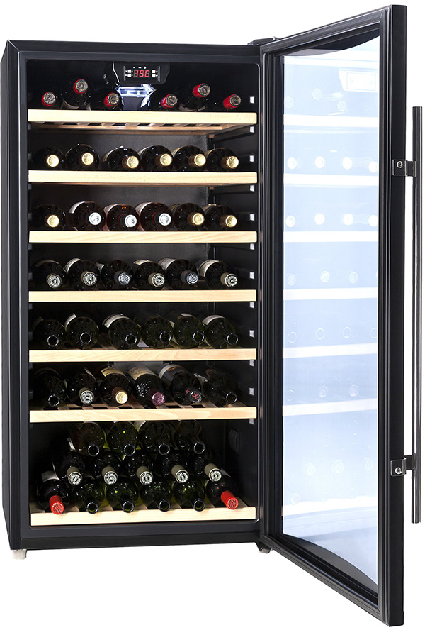 Винный шкаф Cavanova TW080T предназначен для хранения и сохранения всех вкусовых свойств разливного вина в барах, ресторанах, специализированных магазинах, частных домах или квартирах. Модель оснащена внутренней светодиодной подсветкой. Дверь выполнена из тройного изогнутого тонированного стекла с защитой от УФ-лучей в рамке черного цвета, полки - из дерева.