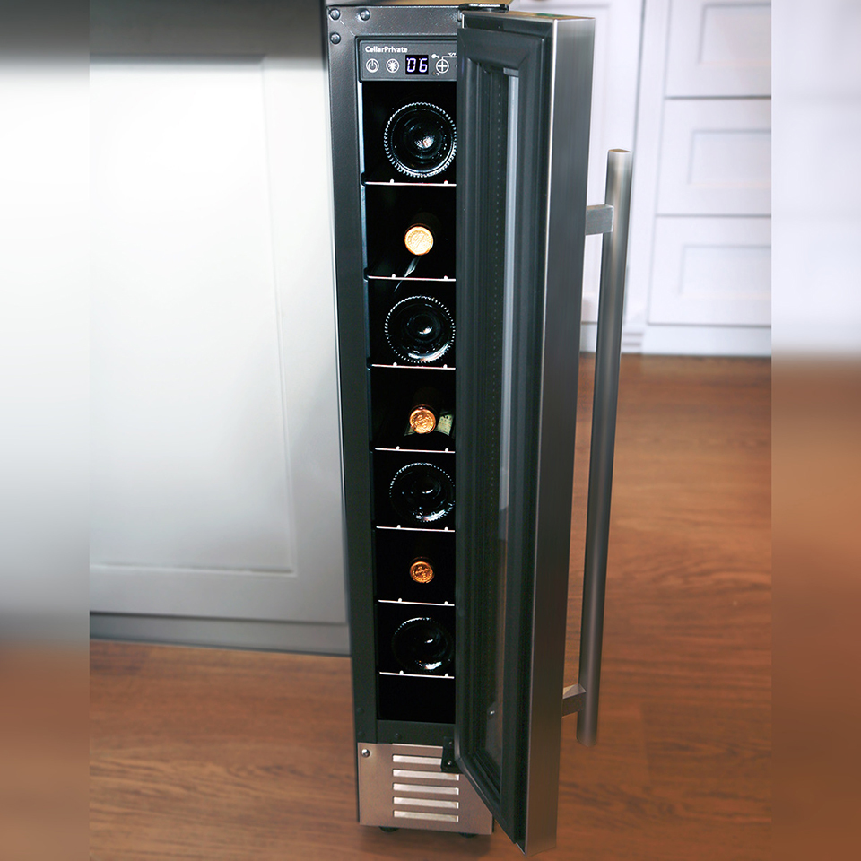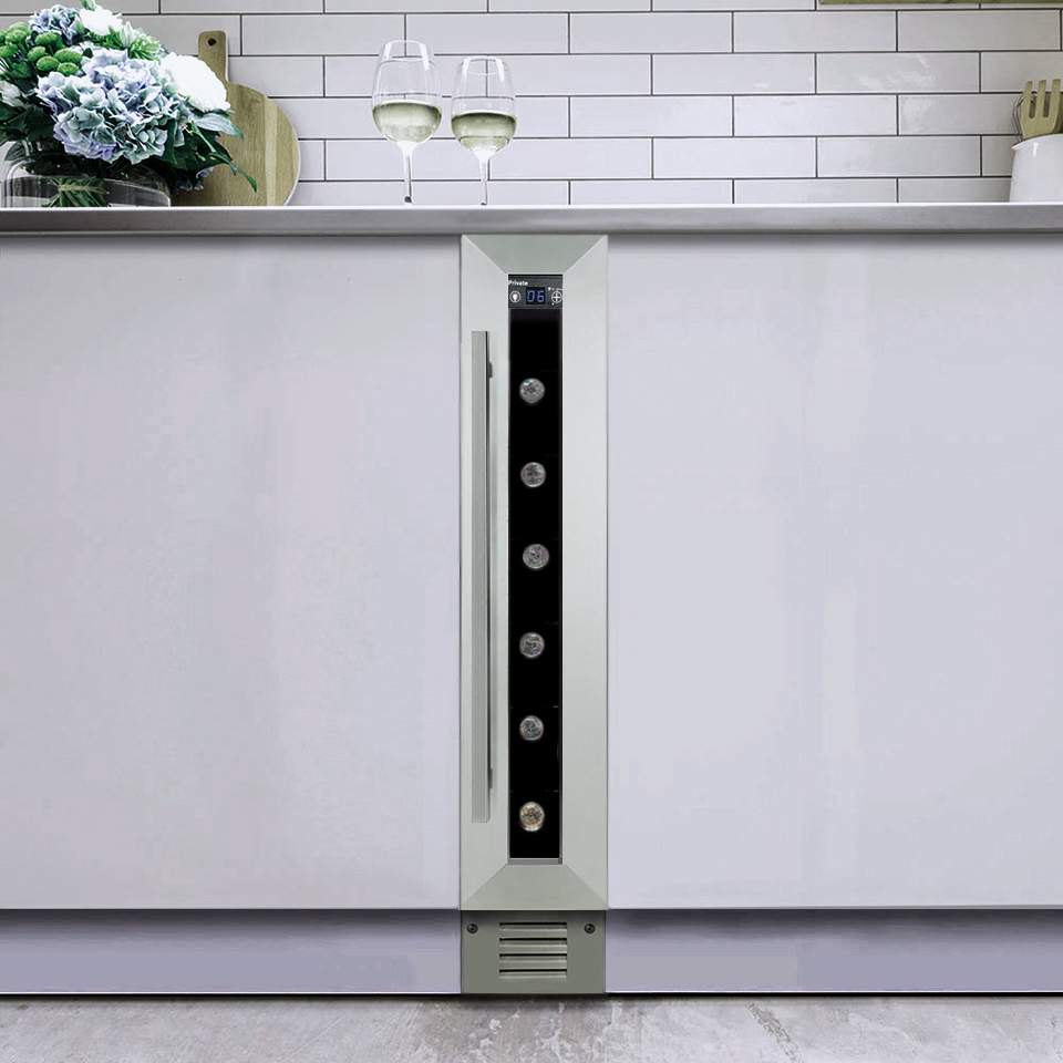 Это самый узкий холодильник для вина вместимостью до 7 бутылок.