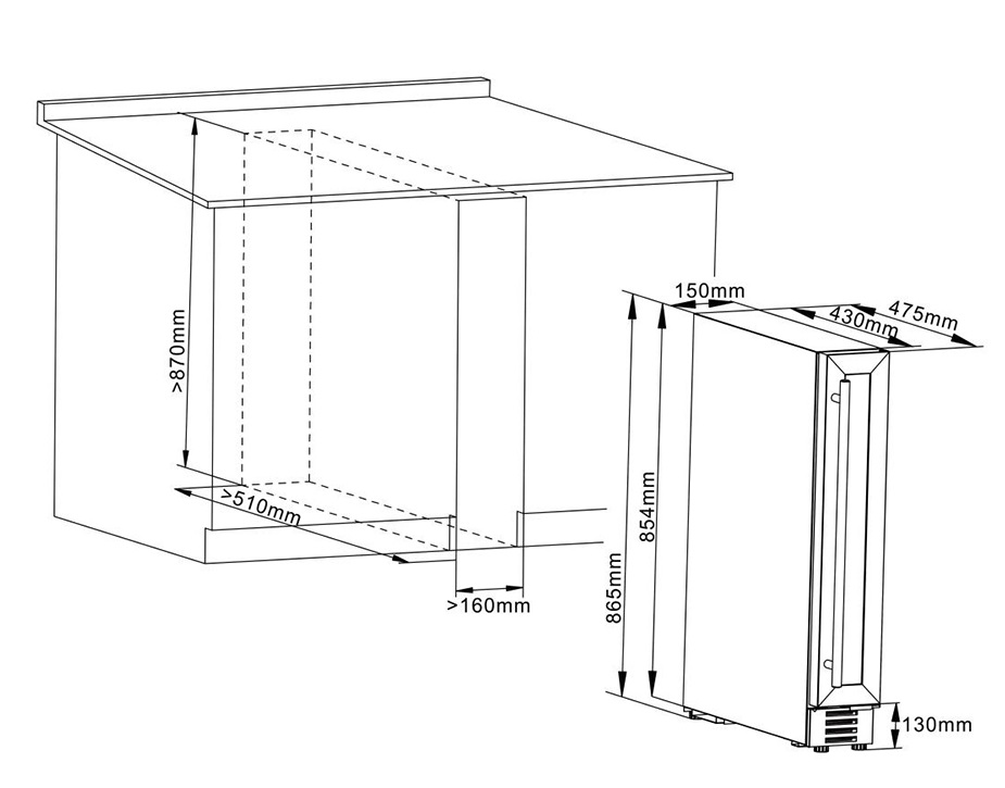 Данную модель винного холодильника можно встраивать в кухонную мебель, он идеально сконструирован для монтирования под столешницу, но также его можно устанавливать и как отдельностоящим.