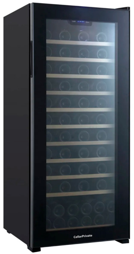 Винный шкаф монотемпературный Cellar Private CP102 используется для охлаждения 86 бутылок вина, которые размещаются за дверцей из затемненного стекла.