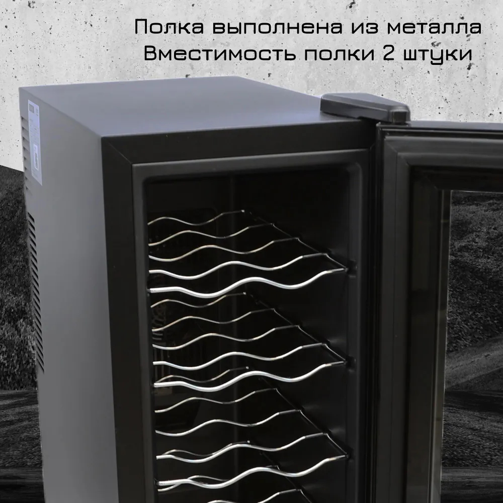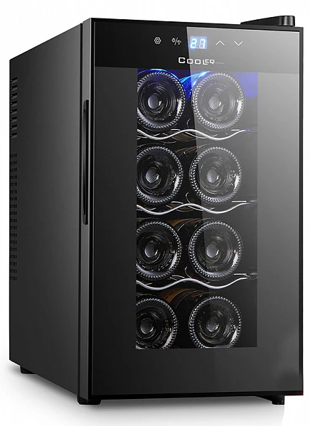Вместительность: Винный холодильник вмещает до 8 бутылок вина или 25 литров.