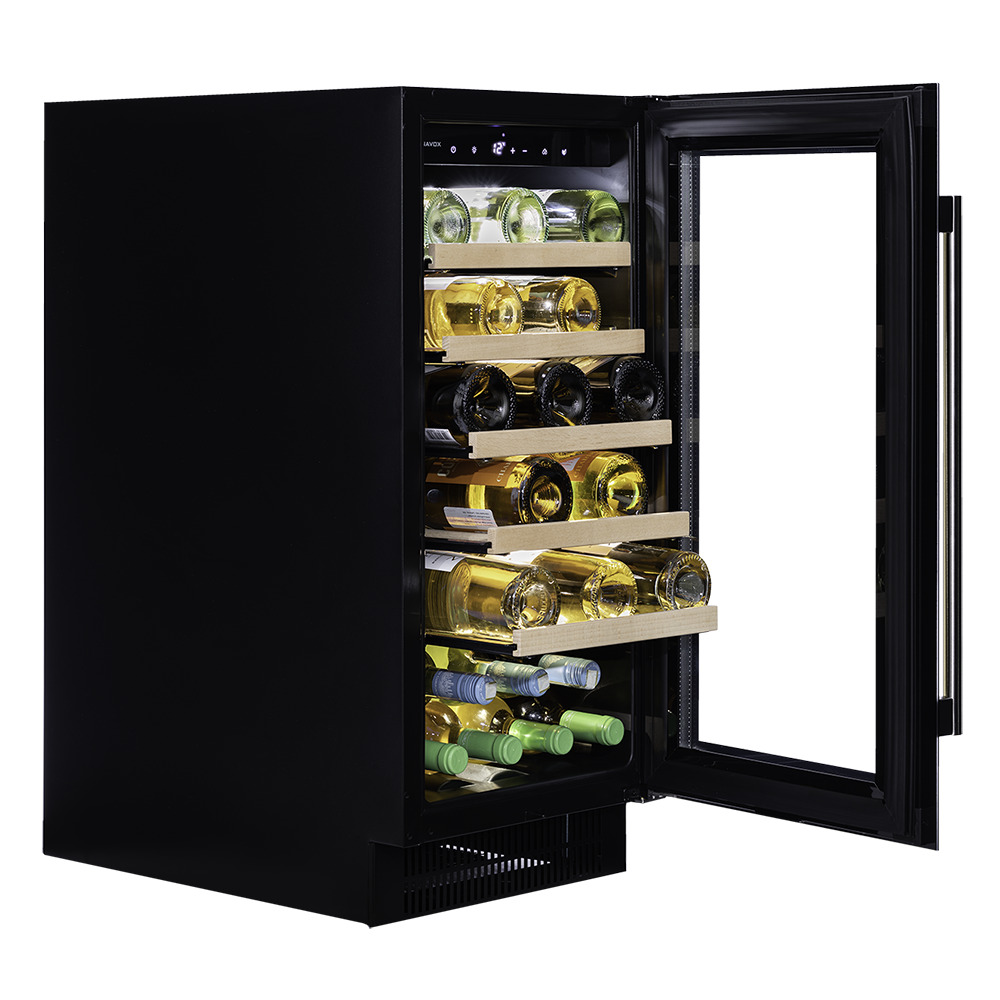 В качестве дополнительной функции, производители Dunavox разработали реверсивную дверь. Это поможет разместить шкаф в удобном для Вас месте или расположить две модели рядом, создав технологию открытия side-by-side. Двойное стекло с защитой от прямых УФ-лучей поддерживает качественные условия хранения вина. Встроенная система вентиляции создаёт необходимую циркуляцию воздуха для правильной работы винного холодильника