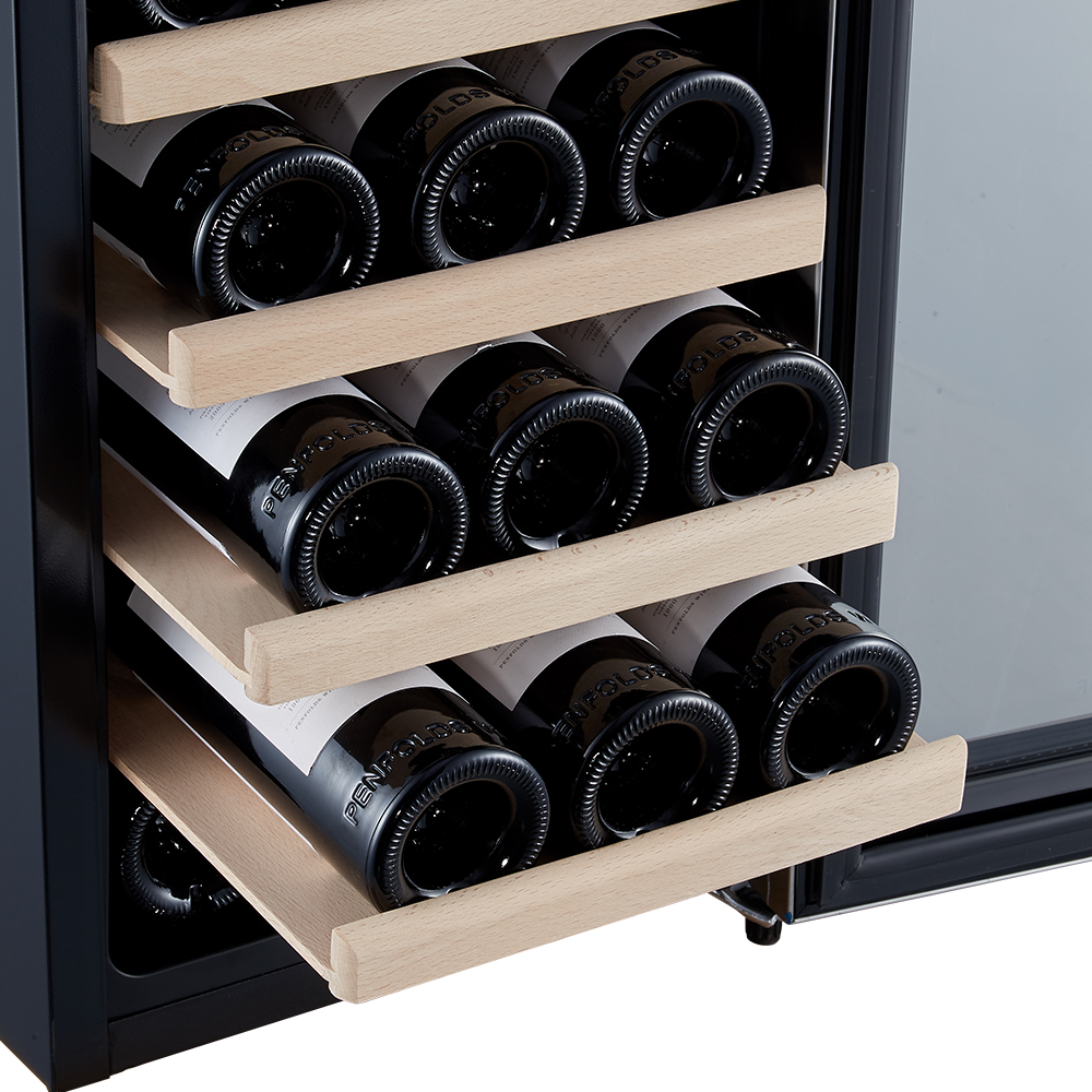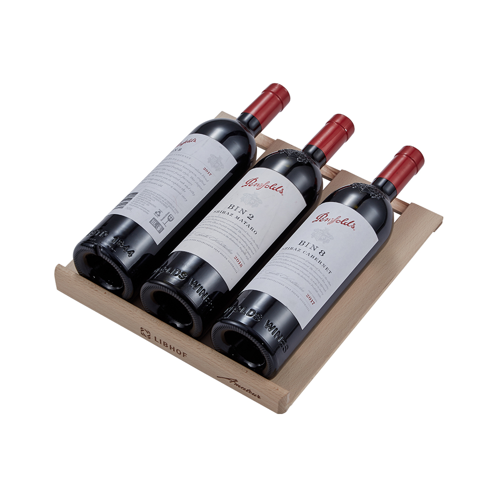 Чтобы пробки не рассыхались, и в вино не попадал кислород, бутылки кладутся горизонтально на три съемных полки из массива бука.