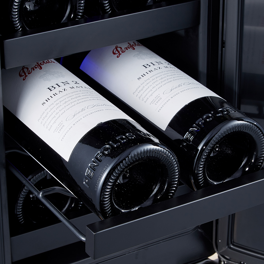 Шкаф отлично подойдет для хранения белых и красных вин, требующих дозревания перед употреблением, а также уже готовых к сервировке. Дверца в стальной раме оснащена стеклопакетом дымчатого оттенка с UV-фильтром, который отлично защищает вино от ультрафиолетового излучения. 3 съемные металлические полки вмещают до 6 бутылок вина объемом 750 мл.