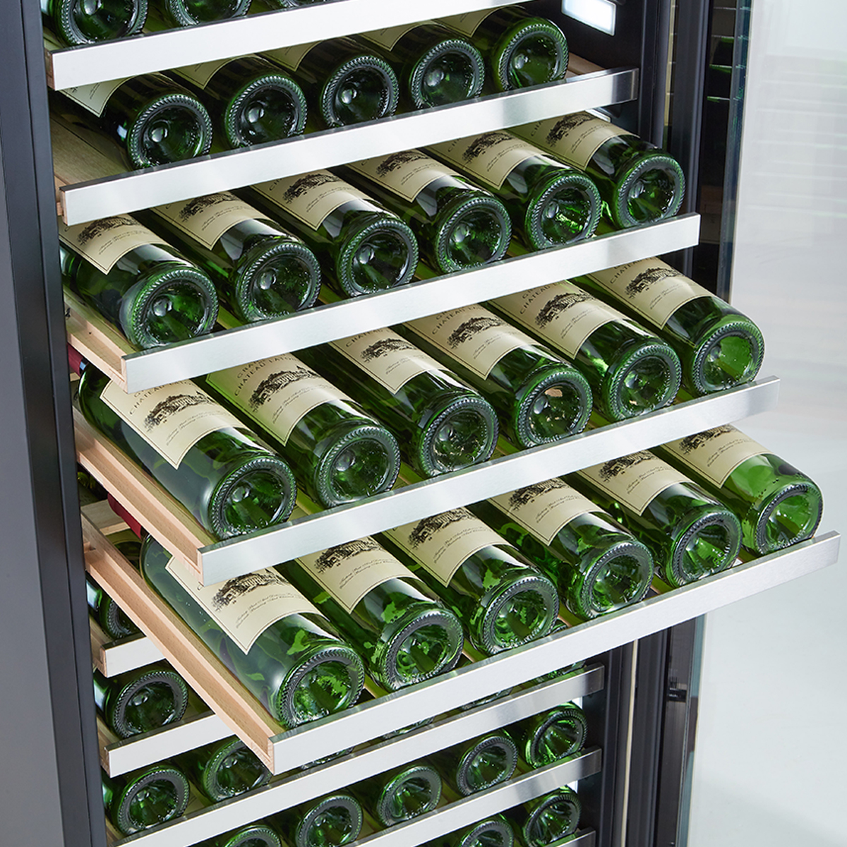 Шкафы серии «Sommelier» — это профессиональное хранение напитков для ресторанов и больших частных коллекций. С ними Вы сможете быть спокойны за сохранность своей винной коллекции. Места «Sommelier» занимает не больше, чем обычный холодильник, а классический строгий дизайн и новейшие технологии позволяют использовать его как дома, так и в ресторане, кафе, винном баре. Высокоточная электронная система управления позволяет поддерживать постоянной внутреннюю температуру хранения вина, а электронный дисплей значительно повышает удобство пользованием винным шкафом. Удобные полки изготовлены из ценных пород дерева, благодаря чему в холодильной камере поддерживается шлейф благородного аромата. При этом наклонная дисплейная полка позволяет в любое время эффектно продемонстрировать Вашу винную коллекцию гостям.