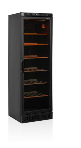 Встраиваемый винный шкаф Tefcold CPV1380E черный отличается прекрасным соотношением цены и качества и идеален для хранения и демонстрации вина, будь то в пабе, баре, ресторане или супермаркете. С помощью панели управления в верхней части холодильного шкафа легко установить температуру для белого или красного вина. Холодильник поставляется с шестью регулируемыми деревянными полками для вина. Также имеется возможность добавить проволочные полки для выделения определенных бутылок.
