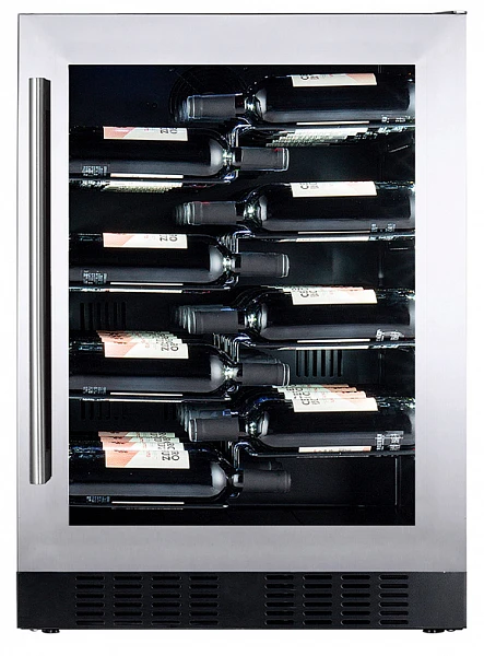 Стеклопакет дверцы заполнен аргоном, что существенно снижает теплопотери а УФ-фильтр защищает вино от вредных ультрафиолетовых лучей, которые могут проникнуть внутрь холодильника.