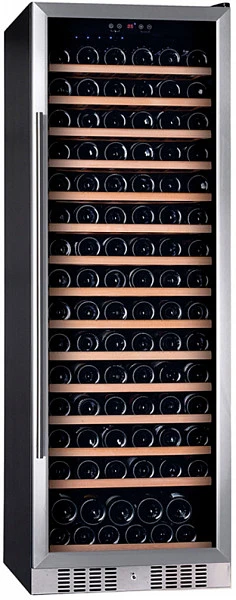 Винный шкаф большого размера из линейки Premium. Имеет фасад из нержавеющей стали, одну температурную зону (5-20°C) и вместимость 166 бутылок.