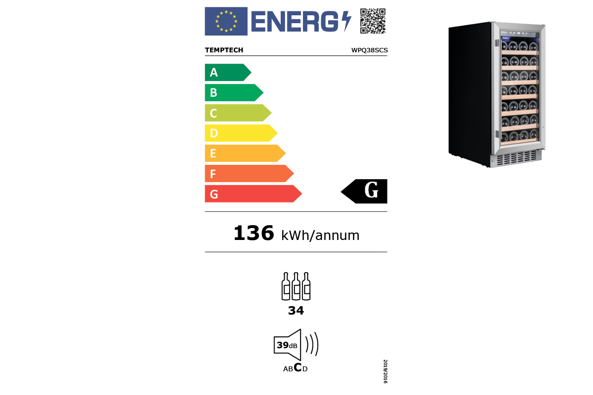 Винный шкаф Temptech WPQ38SCS оборудован вентиляторами, которые обеспечивают циркуляцию воздуха. Конденсат в винном холодильнике используется повторно и, таким образом, поддерживает оптимальную влажность, а фильтр с активированным углем обеспечивает свежий и чистый воздух в холодильнике для вина.