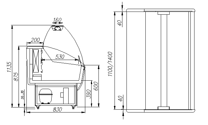Морозильная витрина Полюс G85 SL 1,2-1 (ВХСн-1,2 Полюс ЭКО) предназначена для презентации и продажи мяса, птицы, колбасно-молочных и гастрономических изделия в магазинах с небольшими торговыми площадями и узкими дверными проемами.