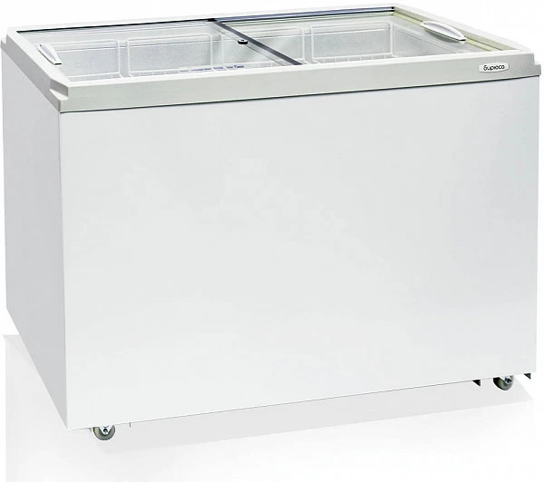 Морозильный ларь Бирюса 355VZQ с прямой стеклянной крышкой предназначен для хранения, демонстрации и продажи замороженных продуктов в подсобных помещениях и залах на предприятиях торговли и общественного питания.