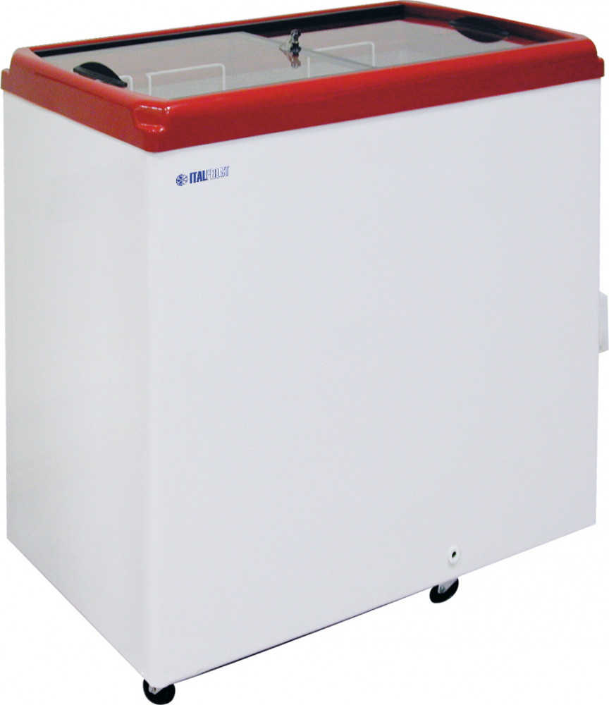 Морозильный ларь Italfrost CF200F красный (без корзин) с прямыми раздвижными стеклами совмещает удобство продажи, демонстрации и хранения продукта.