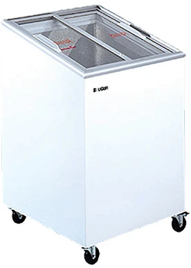 Низкотемпературный ларь с прямым наклонным стеклом D 100 CE предназначен для хранения продуктов при температурном режиме -12°…-22°.