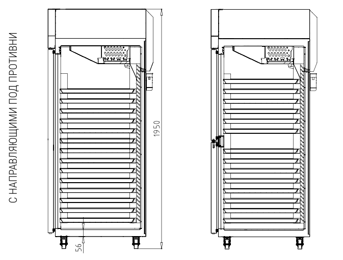 Морозильный шкаф Turbo Air KF25-2P с верхним расположением компрессора и направляющими для противней используется в пекарнях для охлаждения и кратковременного хранения скоропортящихся продуктов.