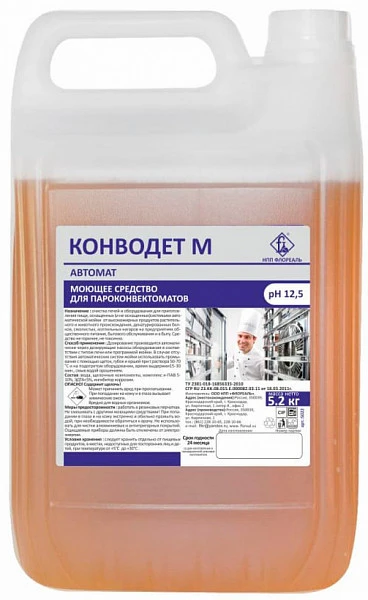 Моющее средство Флореаль Конводет М 5 л 5022 предназначено для очистки печей и оборудования для приготовления пищи.