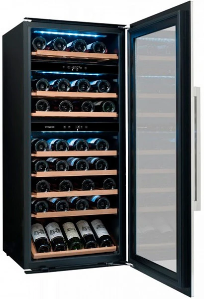 Мультитемпературный винный шкаф Avintage AVI94X3Z разделён на три температурные зоны, что позволяет создавать внутри него оптимальные условия хранения сразу нескольких видов вин, а возможность интеграции в колонну гарантирует удобное расположение шкафа. Внутренняя конструкция модели предоставляет объём в 71 бутылку типа Бордо, чьё качественное и надёжное хранение обеспечивается системой поддержания влажности «плачущая стенка» и контролем температуры.