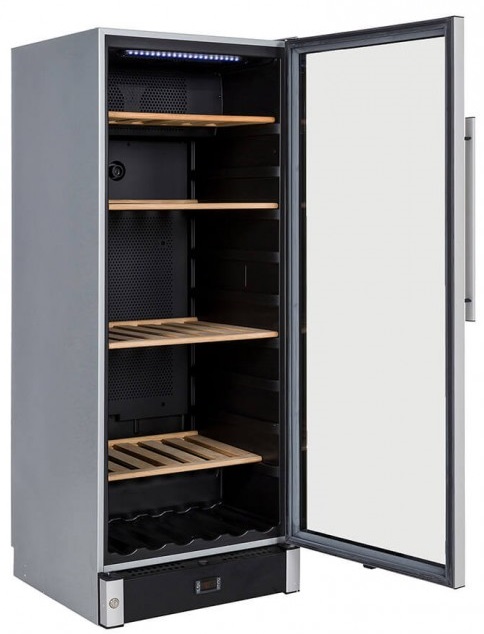 Винный шкаф La Sommeliere VIP150 серии Prestige создает оптимальные условия для сохранения всех вкусовых свойств разливного вина в ресторанах, специализированных магазинах, подсобных складских помещениях, в частных домах или квартирах. Оборудование оснащено дверью с рамкой из алюминия, стеклом с защитой от ультрафиолетовых лучей и 4 полками из дуба.
