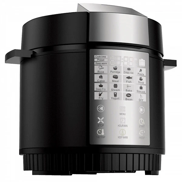 Прибор имеет электронное сенсорное управление с ЖК-дисплеем и меню с 16 программами, в том числе программой «Мультиповар», которая есть не что иное, как ручной режим приготовления для продвинутых пользователей.