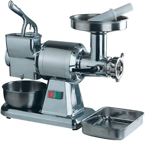 Мясорубка оснащена встроенной теркой, при помощи которой можно измельчать мягкие и твердые сорта сыра, орехи, шоколад или хлеб.