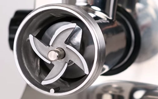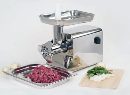 Мясорубка полностью выполнена из нержавеющей стали и оснащена стандартной мясорубочной системой (1 нож, 1 решетка), измельчающей мясо один раз за один проход.