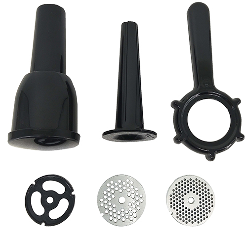 В комплекте: 1 нож, 3 решетки из нерж.стали, 2 насадки для колбасок, ключ для маховика