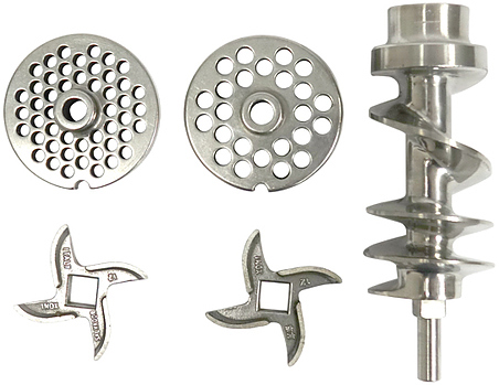 • Комплект: нож 2шт, решетка 6мм, решетка 8мм, толкатель, купатница.