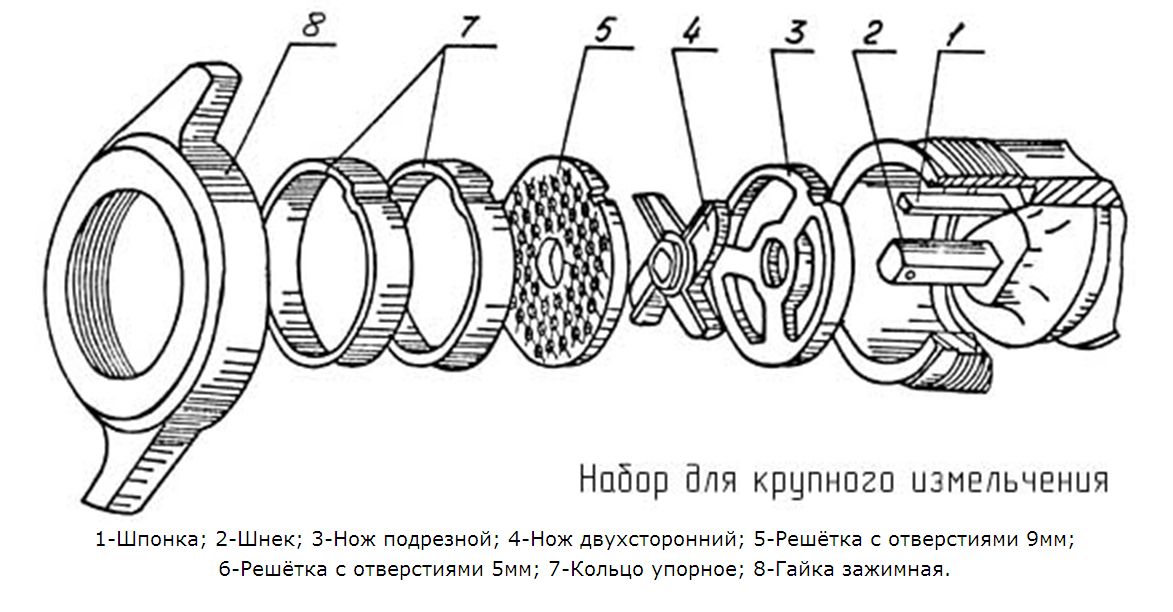 *Практическая производительность мясорубки зависит от скорости подачи оператором порезанного кусочками продукта к шнеку, сортности перерабатываемого мяса, качества заточки инструмента