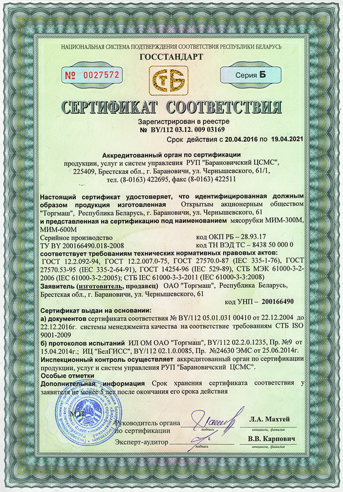 Мясорубка Торгмаш МИМ-600М с системой ножей Unger предназначена для измельчения мяса и рыбы, повторного измельчения котлетной массы и набивки колбас на предприятиях общественного питания.