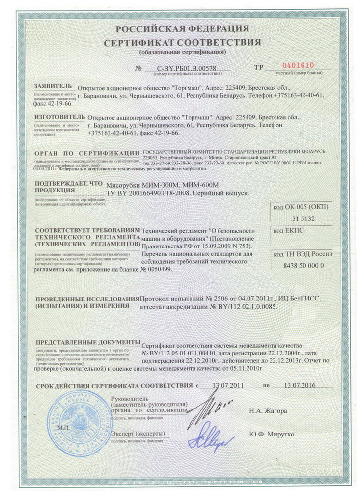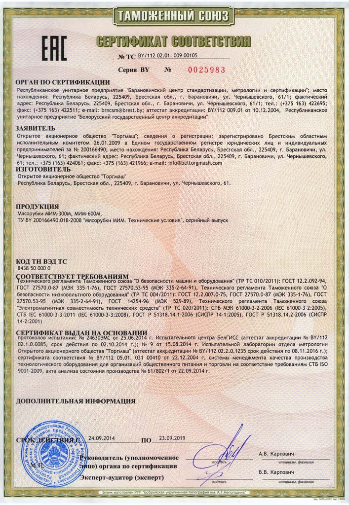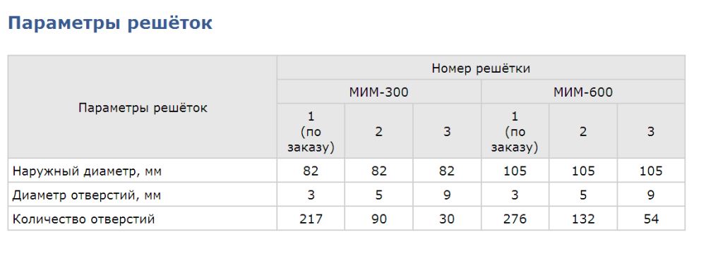 *Практическая производительность мясорубки зависит от скорости подачи оператором порезанного кусочками продукта к шнеку, сортности перерабатываемого мяса, качества заточки инструмента