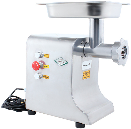 Мясорубка оснащена функцией "Реверс", которая позволяет при наматывании жил освободить шнек без дополнительной разборки машин.